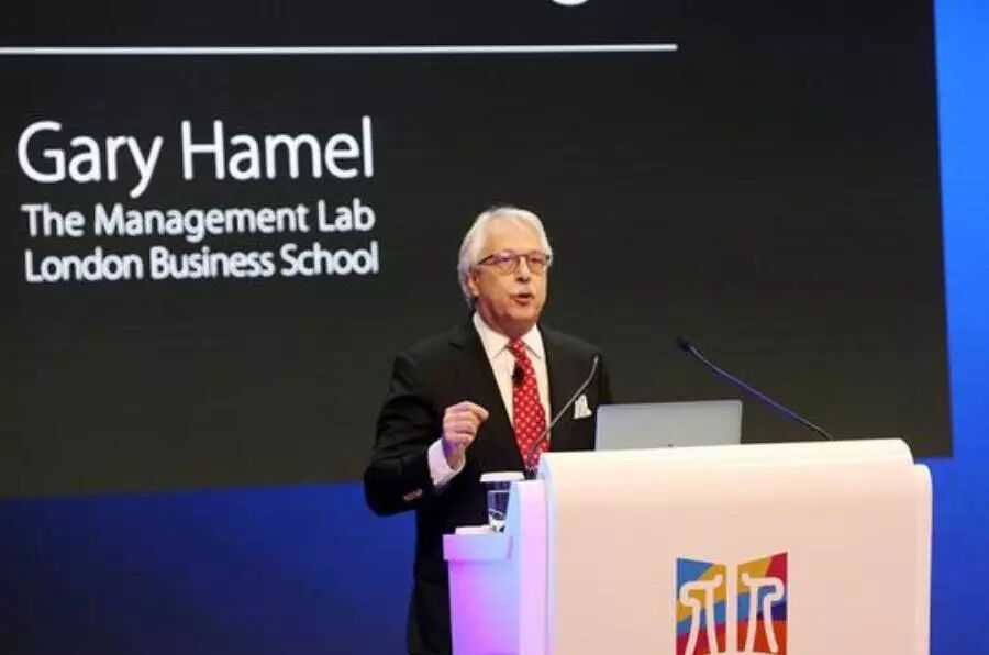 (图为管理学大师加里哈默在人单合一模式国际论坛上演讲)