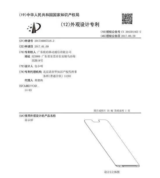 拿时下最流行的“全面屏”和“异形屏”设计来说,实际上,OPPO在研发上一直早于业内。据国家专利局查证,OPPO早于2017年1月就申请了全面屏专利,在9月获得授权,甚至比苹果还早了三个月,而在2016年,OPPO就申请了更加极致的屏内挖孔的异形专利,联合旋转、弹出摄像头等相关全面屏专利,可以实现屏占比接近100%。
