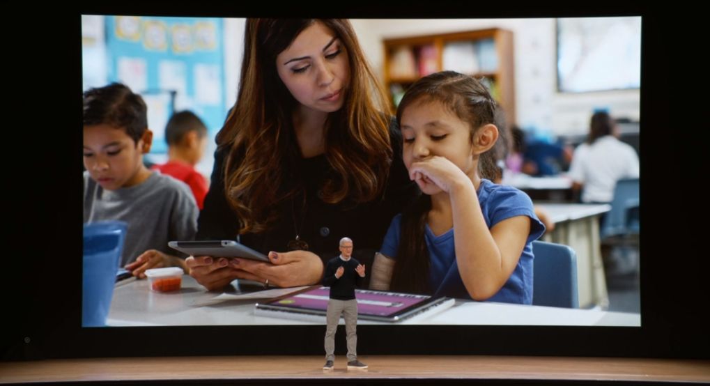 2)抢夺未来市场。没有发布新手机产品,不代表苹果会浪费一次展示自己的机会。此次发布会上苹果推出了廉价版的iPad,学校购买的起售价仅为2388元。有意思的是,苹果的这次发布会是在一所学校举行的,发布会上苹果着重强调了这款其在教育上的亮点,比如专门为教育设立的AR应用Froggipedia AR、Boulevard AR等,新iPad提升了对iWork三件套的支持,加入了Shared iPad功能。另外,使用学校邮箱账号注册苹果ID的学生账号,将会免费获得200GB的iCloud存储空间。苹果这次的目标很明确,重新找回其在教育市场的场子。