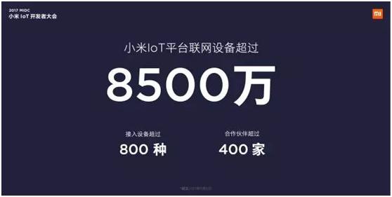 雷军列举的只是小米生态链中做到行业行业第一的几个产品,实际上,小米在IOT领域的布局很广泛。据了解,小米生态链一共投资、孵化了77家公司。到目前为止,已经有30家小米生态链企业发布了产品,还有40多家企业的产品在研发阶段。小米生态链上有4家企业估值超过10亿美元,3家生态链企业年收入超过10亿人民币,16家生态链企业年收入超过1亿人民币。在2017年小米IoT物联网开发者大会上,雷军透露称,小米IoT平台联网设备已超过8500万台,日活设备超过1000万台,合作伙伴超400家。